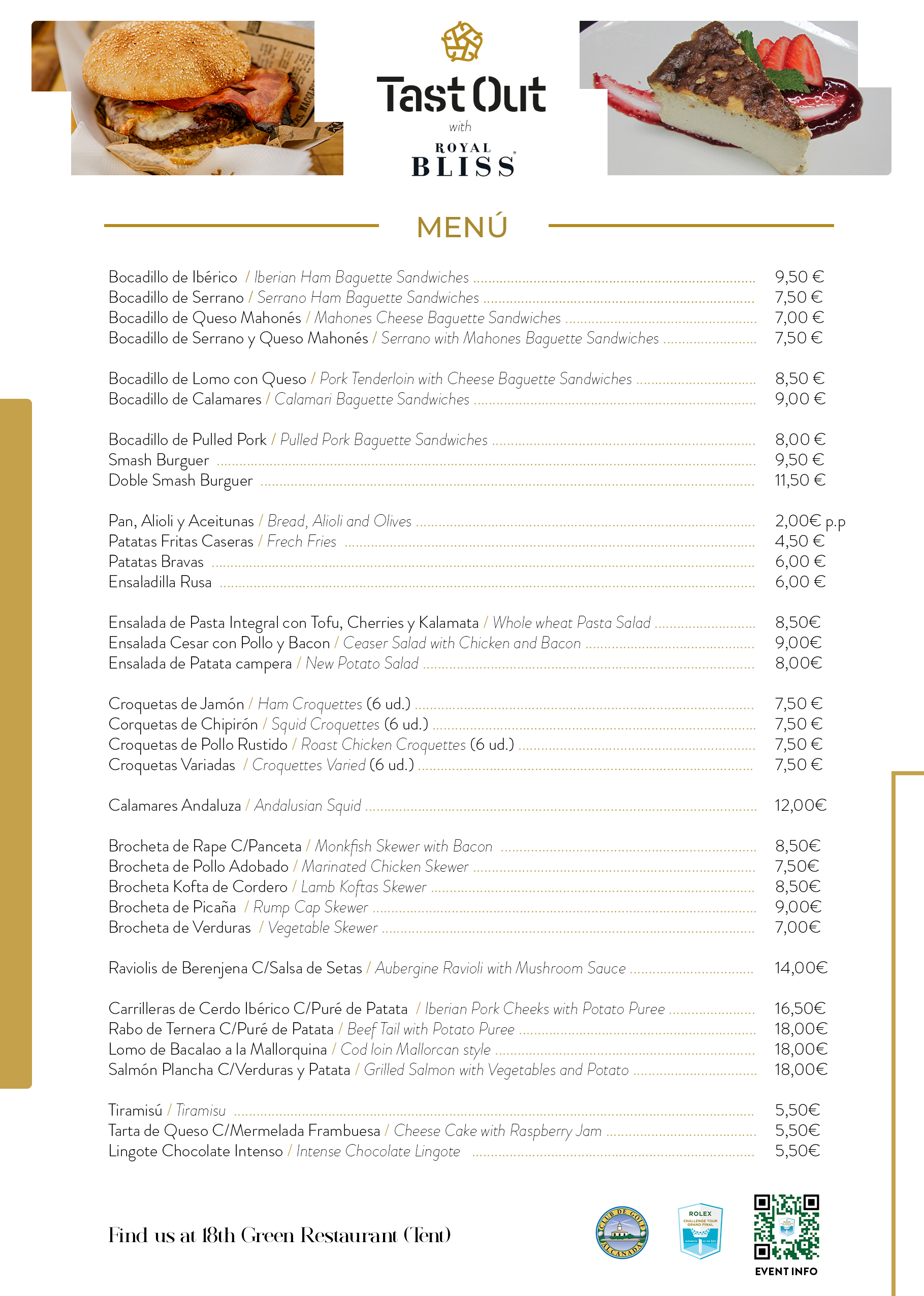 TAST Out Menu available in the 18th Hole Public Catering Area